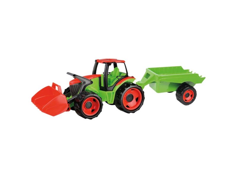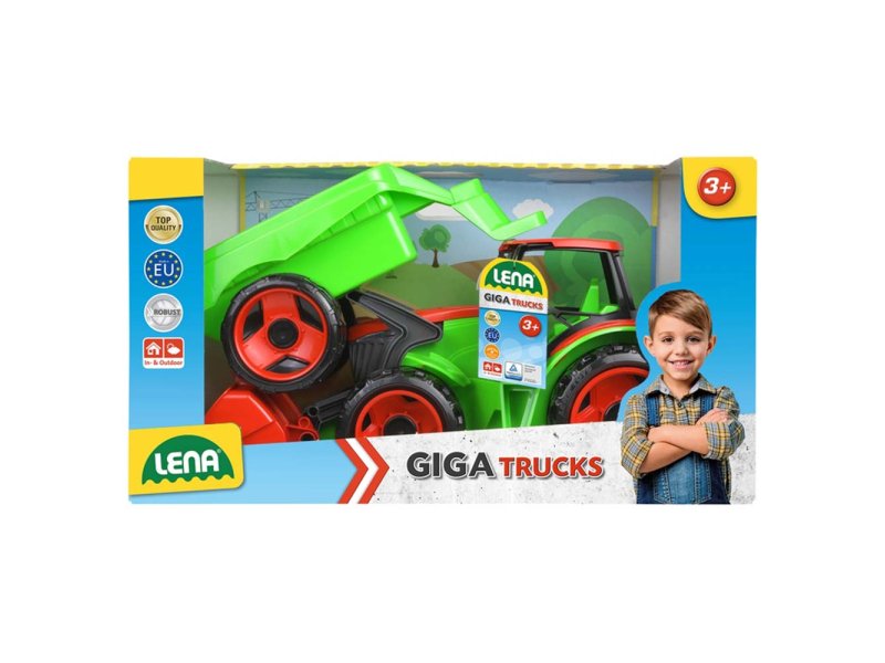 | Karakteristike | Lena Giga trucks traktor sadrži kašiku za utovar i crveno-zelenu prikolicu. Njegov moderan dizajn u crvenoj i zelenoj boji privući će pažnju deci, a njegova funkcionalnost doprineće zabavi. Pogodno za igru u zatvorenom i na otvorenom.Prikolica se jednostavno kači za zadnji deo traktora i može se koristiti za transport peska ili drugih materijala. Čvrsta konstrukcija garantuje izdržljivost i čvrstoću, osiguravajući dugotrajnu radost korišćenja. Kašika sa prednje strane traktora može se pomerati gore-dole. Pogodno za decu stariju od 3 godine. |