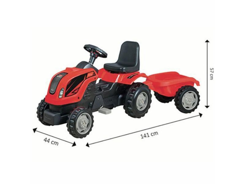 Opis | Realističan dizajn traktora sa prikolicom Vožnja na pedale – podstiče fizičku aktivnost Prikolica za prevoz igračaka, lišća ili peska Izdržljiva plastika i čvrsta konstrukcija za bezbednu igru Idealno za igru u dvorištu, parku ili selu Bez baterija, bez punjenja – samo cist pokret i decija energija! |