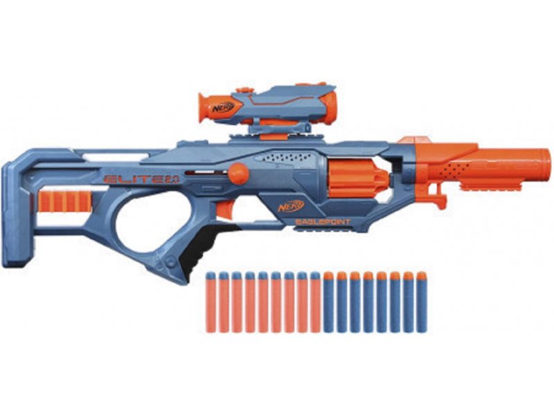 Karakteristike | PRILAGOĐITE BLASTER ZA BILO KOJU MISIJU SA OBIMOM I CEVOM: Nerf Elite 2.0 Eaglepoint RD-8 blaster uključuje odvojivi nišan i cev za kreiranje različitih stilova blastera za bilo koju misiju BUBANJ SA 8 strelica, DELOVANJE ZAVRŠKA, ISPALJA SE DO 90 FATA: Ispalite 8 strelica u nizu na udaljenosti do 90 stopa (27 metara) od okretnog bubnja sa 8 strelica na ovom blasteru koji ima zamajac 16 NERF ELITE pikado, SKLADIŠTE ZA PIKADO, TAKTIČKE ŠINE: Uključuje 16 zvaničnih Nerf Elite strelica od pene, ugrađeno skladište za 8 strelica tako da možete brzo da ponovo punite, i 3 taktičke šine za Nerf opremu (prodaju se zasebno) Broj modela: F0423 |