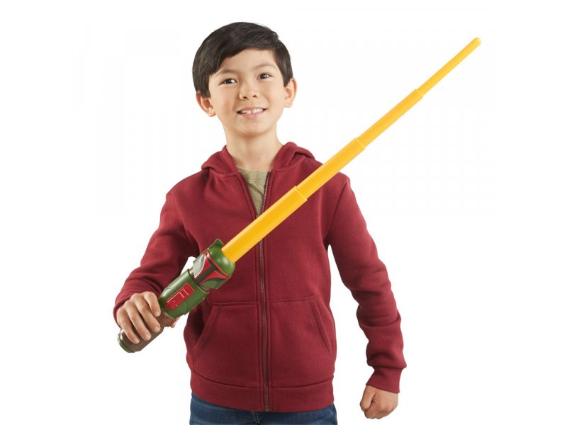 | Karakteristike | Teleskopski dizajn Star Wars Boba Fett mača omogućava deci da sklope mač kako bi ga lakše poneli, i da ga posle opet razvuku! Mač se aktivira tako što se lagano zamahnete ispred sebe, a on se može teleskopski proširiti do dužine od 48 cm. Mač ne sadrži svetlosne i zvučne efekte, visina drške: 22 cm, maksimalna dužina teleskopskog dela: 48cm, ukupna dužina: 70cm |