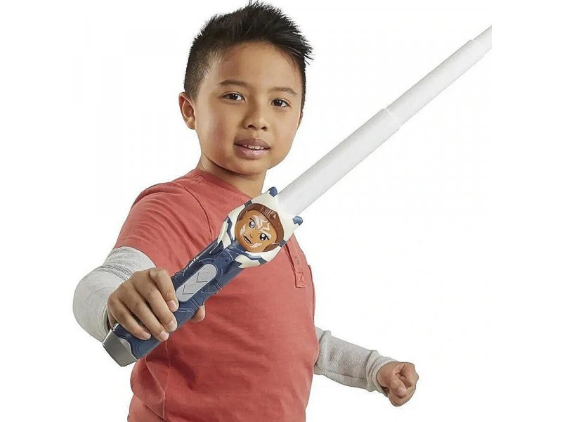 Teleskopski dizajn Star Wars Ahsoka Tano mača omogućava deci da sklope mač kako bi ga lakše poneli, i da ga posle opet razvuku! Mač se aktivira tako što se lagano zamahnete ispred sebe, a on se može teleskopski proširiti do dužine od 48 cm. Mač ne poseduje svetlosne i zvučne efekte.