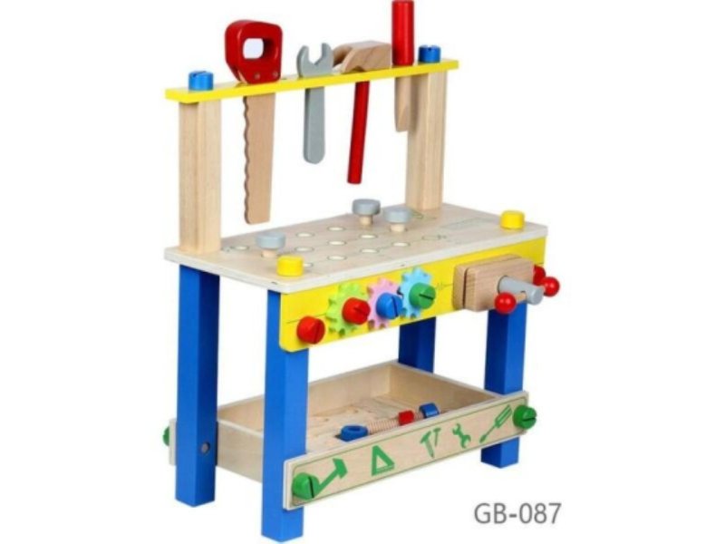 | Karakteristike | Ovaj set za igru je napravljen od drveta kako bi bio dovoljno izdržljiv za svakodnevnu igru, a sve ivice su brušene i ofarbane kako bi bile bezbedne za male ruke. Sa alata i dodatka poput navrtki, vijaka i drvenih delova, vaš dečak ili devojčica mogu da grade šta god im mašta stvori! Sa toliko toga za gradnju i stvaranje, ova igračka je odličan uvod u STEM (nauka, tehnologija, inženjerstvo i matematika) učenje i umetnost obrade drveta. Ova radna klupa za igračke ima policu za odlaganje i proreze za alat kako bi svi delovi bili uredno organizovani i spremni za sledeći projekat vašeg mališana, kao i oslikani lenjir koji pomaže u učenju merenja. Uključuje: čekić, odvijač, ključ, testeru, stegu, dodatka (navrtke, vijke, šrafove, drvene delove i zupčanike) |