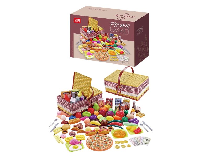 | Karakteristike | U kompletu:1 korpa za piknik,103 dodatka: konzerve, kečap, voće i povrće, slatkiši, hot dog, pica, biftek i pileći batak, pomfrit, posuđe i pribor, novac itd. Materijal: kvalitetna plastika. Dimenzije: 19,7×14,7×30 cm. Težina: 1250 g. Krenite na najbolji piknik ikada sa ovim savršenim kompletom za piknik. Odvezite se do svoje omiljene lokacije, pronađite dobro mesto za piknik i ponesite obilan izbor hrane i slatkiša. Uživajte u ukusnoj hrani na pikniku u prirodi. Savršeno za kreativno igranje uloga solo, sa porodicom ili prijateljima. |