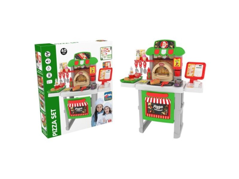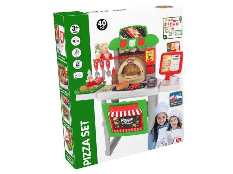 Komplet sadrži 40 delova, uključujući kriške pice, dodatke za pravljenje obroka, pribor za jelo, desert, aparat za piće i još mnogo toga.