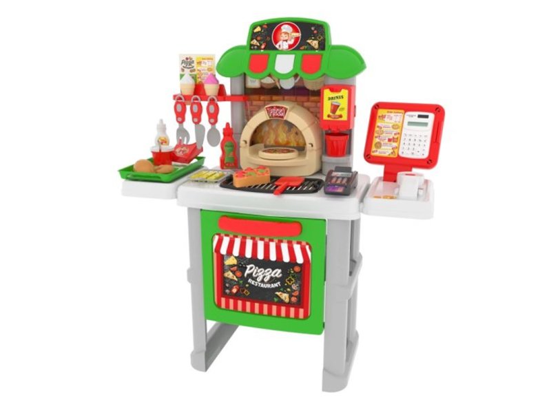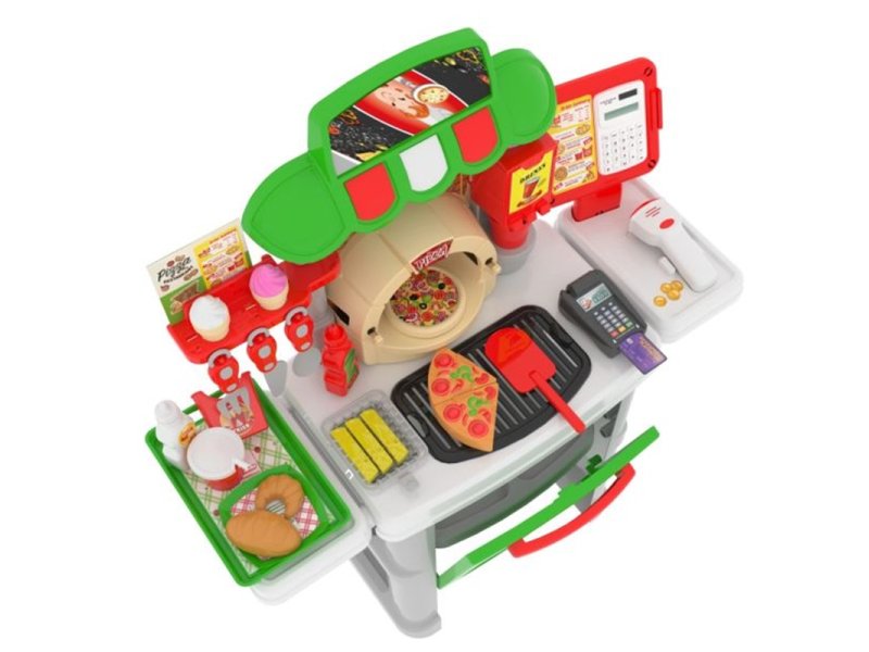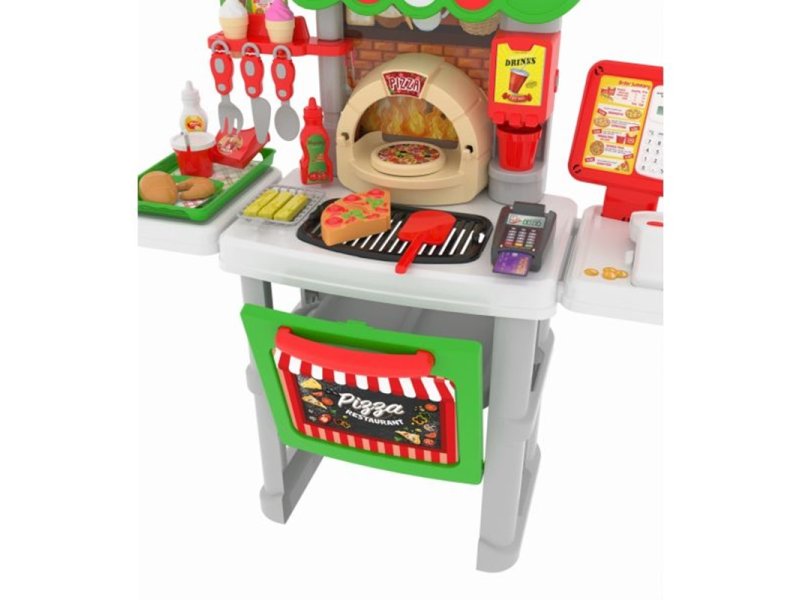 | Karakteristike | Edukativne funkcije: Podstiče kreativnu igru, razvoj društvenih veština i razumevanje svakodnevnih aktivnosti kroz simulaciju rada u piceriji. Realistična oprema: Kalkulator sa funkcijama, čitač bar kodova sa svetlom i zvukom, POS terminal za kartično plaćanje. Raznovrsni dodaci: Ukupno 40 delova uključuje pribor za kuvanje, serviranje i igru. Zabava i učenje: Deca uče o plaćanju, računanju i društvenim interakcijama kroz igru uloga. Sigurni materijali: Napravljen od bezbednih i kvalitetnih materijala, set je pogodan za decu uzrasta 3+. Dimenzije proizvoda: Visina 78 cm, širina 27,5 cm, dužina 73 cm. |