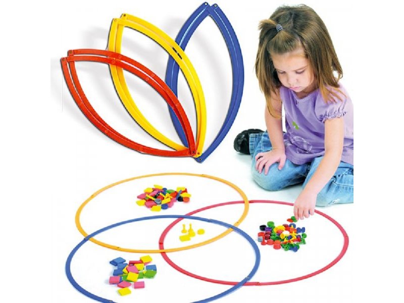 Komplet od 6 sklopivih prstenova u 3 boje za formiranje Venovog dijagrama, skupa/podskupa, sortiranje i upoređivanje.