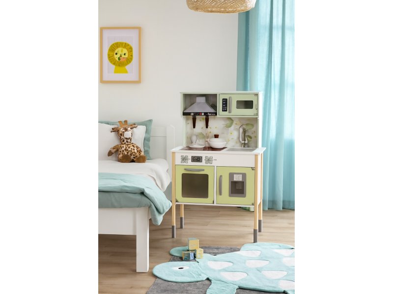 | Karakteristike | Najnoviji Rastimo zajedno model koji će oduševiti devojčice! Velika drvena kuhinja za igru sa elektronikom i dodacima Rastimo zajedno izrađena je od najfinijih materijala MDF i drveta. Ova edukativna igračka za decu omogućuje deci da kroz igru razvijaju različite veštine poput preciznosti pokreta, kreativnosti, empatije i logičkog razmišljanja. Najnoviji Rastimo zajedno model koji će oduševiti devojčice! Velika drvena kuhinja za igru sa elektronikom i dodacima Rastimo zajedno izrađena je od najfinijih materijala MDF i drveta. Ova edukativna igračka za decu omogućuje deci da kroz igru razvijaju različite veštine poput preciznosti pokreta, kreativnosti, empatije i logičkog razmišljanja. Deca vokalno izvode ulogu koju igraju, što poboljšava njihov jezički razvoj i komunikaciju. Igra uloga u kuhinji proširuje rečnik deteta kako ono počinje da uči nazive novih predmeta i namirnica, dok istovremeno koristi nove glagole kao što su „kuvati“ i „mešati“ i suprotnosti kao što su „vruće“ i „hladno“. Dimenzije sklopljene kuhinje: 98,4cm x 70cm x 30cm |