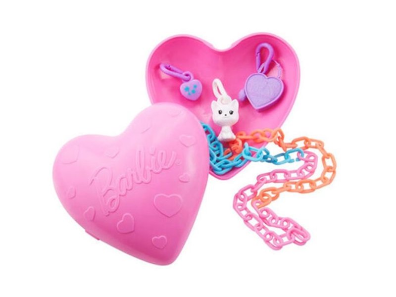 Otvorite misteriozne torbe da biste pronašli još dva priveska: srce slatkiša i Barbi kukicu koje služi kao dodatak za lutke.