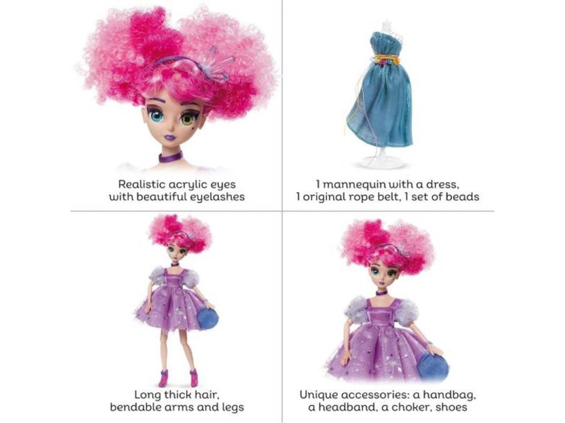 Karakteristike | Cassie je jedinstvena, kraljica kosmosa. Ona obožava istraživati sve neobjašnjive pojave i tajne svemira. Njena omiljena boja je nežna lavanda, što se odražava na njenom stilu. Uz svoju kristalnu torbicu Cassie nosi svoj mali univerzum svuda sa sobom. Lutka dolazi sa setom bisera, dodatnom haljinom što vam daje mogućnost da sami kreirate modnu kombinaciju uz brošuru sa dizajnerskim lekcijama. Takodje, Cassie dodatnu notu daje njena kovrdžava ružičasto-ljubičasta boja kose. Visina lutke: 27.9 cm Dimenzije pakovanja: 25 x 7 x 37 cm |