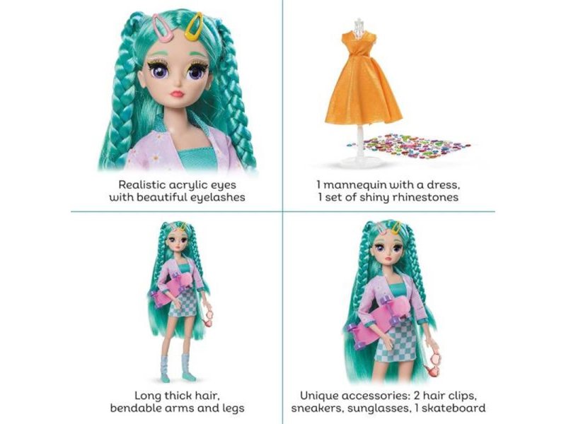 Kelia se ističe svojim urbanim stilom koji je savršen za decu koja vole da eksperimentišu sa modom. Njena kovrdžava plava kosa i moderni skateboard čine je pravom ikonom stila. Uz to, njene moderne patike dodaju dodatni sloj urbanog šika, čineći je savršenim saputnikom za svako modno putovanje.