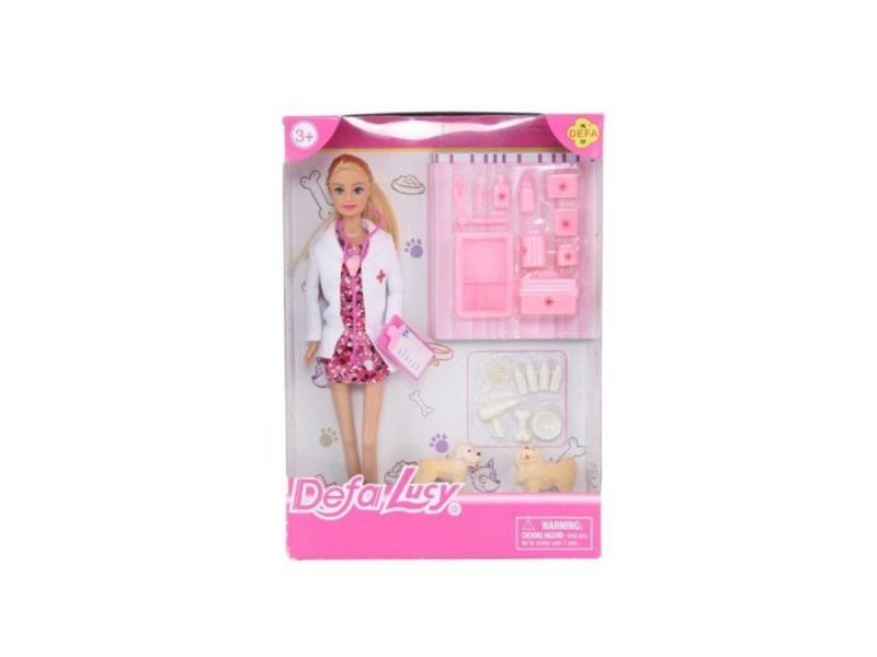 Karakteristike | Lutka Defa se može naći u različitim okruženjima sa raznim dodacima i tako podstaći kretivnost vašeg deteta i zabaviti ga. Sve devojčice koje vole životinje i maštaju da leče životinje uživaće igrajući se sa ovom lutkom veterinarkom. Lutka dolazi u kompletu sa dva psa i svime sto jedna veterinarska ambulanta ima. Svaka lutka izrađena je od veoma kvalitetne plastike. Dimenzije pakovanja: 23 x 5 x 33 cm |