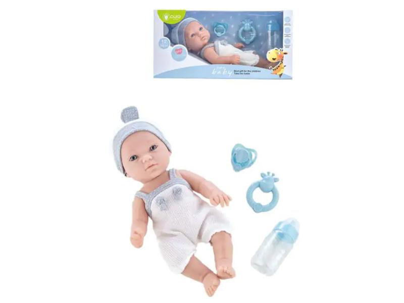 U setu: 1x lutka beba, 1x letnji bodi, 1x kapica, 1x duda, 1x zvečka, 1x bočica