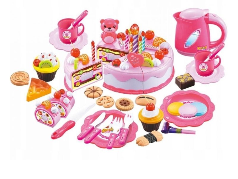 | Karakteristike | Set za rođendansku zabavu sadrži čak 80 delova. Dodaci u setu izrađeni su od plastike bezbedne za decu. Uključena torta sastoji se od nekoliko zasebnih delova povezanih čičak trakom, tako da je moguće seći je priloženim nožem. Tortu možete ukrasiti raznim dodacima i svetlucavim svećicama. Pored torte, set uključuje dva kompletna pribora za jelo, tanjire, šolje i čajnike za pravljenje čaja. Celokupan set upotpunjuju različite vrste kolača i slatkiša. Dimenzije pakovanja: 28,5 x 19 x 9,5 cm Težina: 0,4 kg |