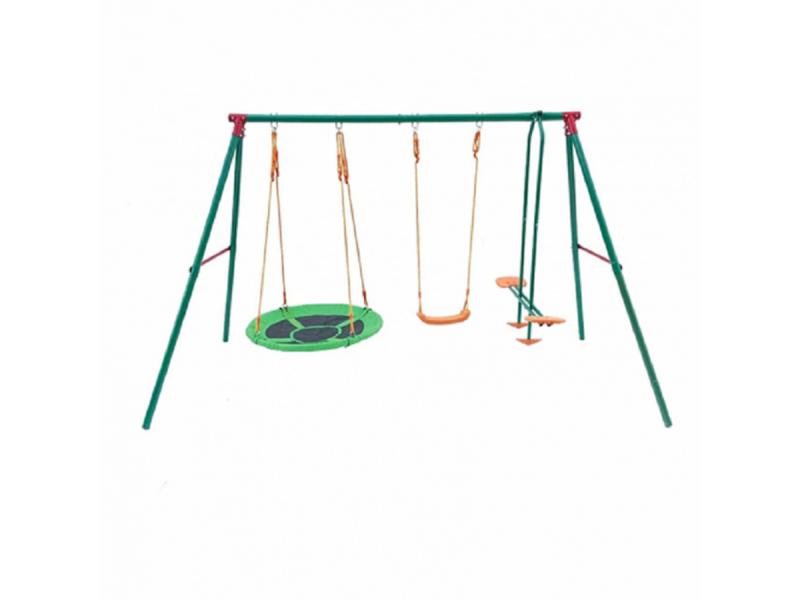 | Karakteristike | Ljuljaška za decu je super stvar jer dok su napolju veoma će se zaigrati. Ovo nije samo obična ljuljaška jer u sklopu nje imamo 3 dela: 2 ljuljaške i klackalica. Ova ljuljaška je namenjena za 4 deteta uzrasta od 3 do 10 godina. Opis i karakteristike proizvoda: • Sadrži 3 dela: ljuljašku gnezdo, klackalicu i klasičnu ljuljašku • Čelični praškasti premaz: (glavni okvir) • Noga: 45x1.5mm, • Bočna prečka: 25,4x1,0 mm, • Užad podesiva po visini napolju. • Dimenzije: 106x67x55 cm. • Predviđeno za decu uzrasta 3-10 godina |