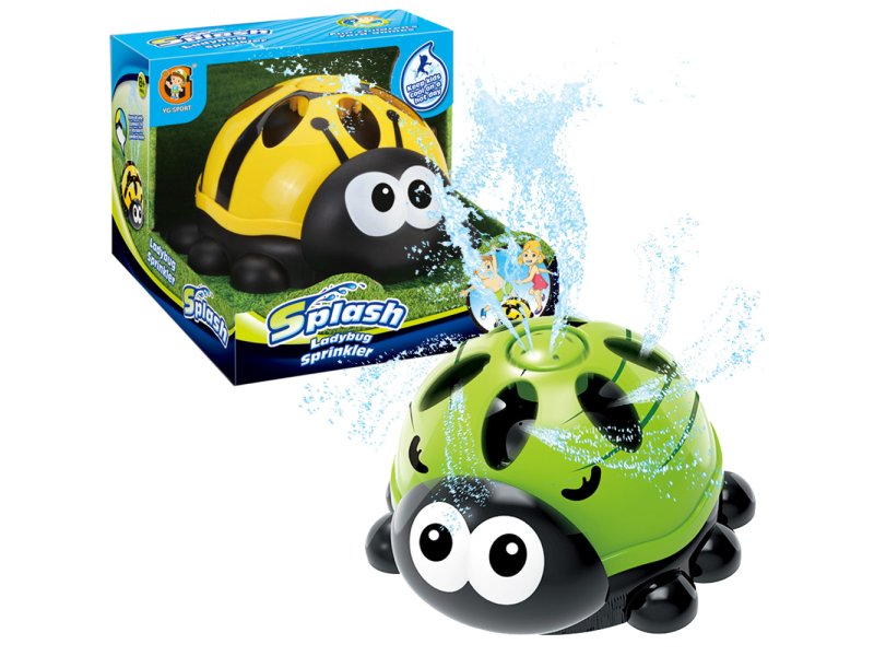 Prskalica u obliku bubamare sa otvorom na vrhu iz kojeg prska voda. Dostupna u žutoj i zelenoj boji. Lako se povezuje sa baštenskim crevom pomoću priključka sa strane.