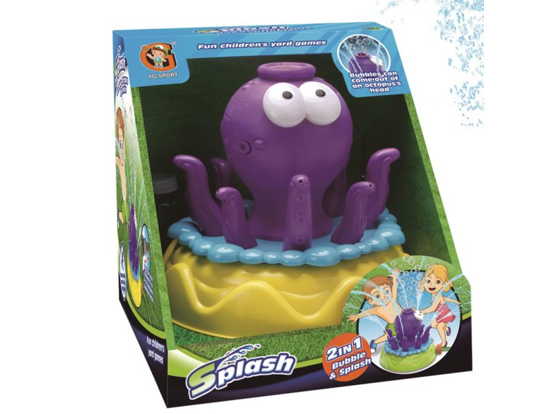 Prskalica u obliku oktopoda koja se rotira za 360 stepeni, sa mlaznicama koje prskaju vodu u različitim pravcima. Set sadrži i tečnost za balončiće koji izlaze sa vrha glave oktopoda. Lako se povezuje na baštensko crevo pomoću priključka sa strane.