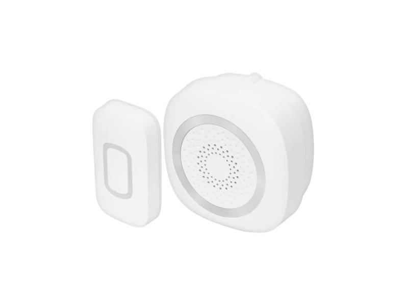 | Specifikacije | Napajanje 3 x 1.5 V AA baterije, nisu u sklopu (zvono); 1 x 3 V CR2032 baterija, u sklopu (taster) Broj melodija 60 Domet na otvorenom 160 m Jačina zvuka Podesiva 3 nivoa jačine ili isključivanje zvuka Kodovi Digitalni Dodatne funkcije Svetlosni efekat prilikom zvonjenja (može se isključiti) Sadržaj seta 1 x zvono, 1 x taster Frekvencija 433.9 MHz IP zaštita IP44 (za taster) Dimenzije 80.6x80.2x32.8 mm (zvono), 35.3x65.4x17 mm (taster) |