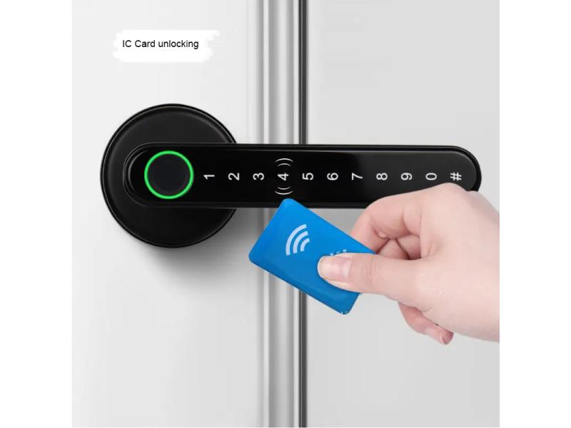 | Specifikacije | Model: Smart Nest pametna kvaka sa otiskom prsta i IC karticom Način otključavanja: Aplikacija/ Otisak prsta/ Šifra/ RFID kartica/ Mehanički ključ/ Aplikacija: Tuya Smart - dostupna i besplatna aplikacija za sve IOS i Android korisnike Dimenzije: 65 x 65 mm Kvaka: 150 mm Materijal: Legura cinka Napajanje: 4 AAA baterije, USB Prosečno trajanje baterija: 1 godina (indikacija stanja baterije kroz aplikaciju) Debljina vrata: 35 - 80 mm Mogućnost otključavanja / zaključavanja brave: PIN kod RFID kartice Otisak prsta Aplikacija na mobilnom telefonu Mehanički / ključ Dodeljivanje PIN koda preko aplikacije za više korisnika Dodeljivanje jednokratnog PIN koda Mogućnost snimanja na SD karticu Izveštaji o otvaranju/zatvaranju vrata Izveštaj o stanju baterije Protivprovalni alarm i obaveštenje |