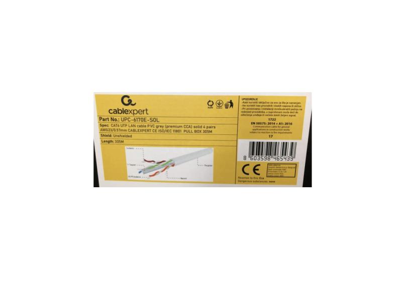 | Karakteristike | Za unutrašnju upotrebu (Indoor) Model: UTP LAN kabl punog preseka Proizvodac: Gembird Cablexpert Kategorija: cat.6 cat6 UTP unshielded LAN kabl sa cvrstim žicama CCA provodnici Kategorija 6 Materijal provodnika: AWG23 cvrsta CCA-standardna legura bakar (8) -aluminijum CCA Dužina: 305 m Pakovanje: kotur u kutiji Boja: Siva Temperatura transporta i skladištenja: 0 - 60 stepeni Radna temperatura: -20 - 70 stepeni Prodaje se na kotur Provodnik: pun presek SOLID-CCA(8) Precnik:0.57mm±0.008mm AWG:23 Izolacija: TYPE:PE cvrsta Precnik: 0.98mm±0.01mm Rip cord: DA ("konac" kojim moze da se rasece/otvori kosujica (jacket) od izolacije) Filler: HDPE 5x5mm Spoljni oklop: PVC Boja: Siva Debljina: 0.57mm Spoljni presek: 6.5mm±0.5mm NAPOMENA: -Kabl koristiti iskljucivo za ono za šta je namenjen. -Ne koristiti kao provodnik visokih napona ili slicno. -Pri povezivanju i instalaciji mreže, obratiti pažnju na redosled provodnika, u suprotnom može doci do oštecenja uredaja ili necete dobiti željeni signal. |