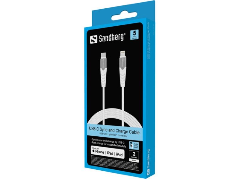 Koristite Sandberg USB-C sa Lightning kablom da povežete svoj iPhone ili iPad sa Lightning portom na računar ili napajanje pomoću USB-C.
