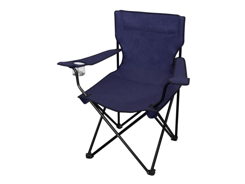 Tamnoplava ribolovačka stolica predstavlja klasičnu opremu za izlete, obogaćenu praktičnim dodacima, montiranim na profesionalnoj konstrukciji izrađenoj od izdržljivih materijala (čelik i oxford tkanina).