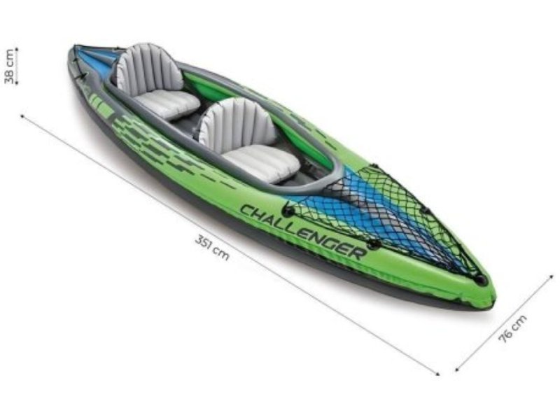 Ovaj kajak je idealan za rekreaciju na vodi, dizajniran za dve osobe. Proizveden je od izdržljivog materijala, a uključuje dva vesla, pumpu za brzo naduvavanje i pokrivač.