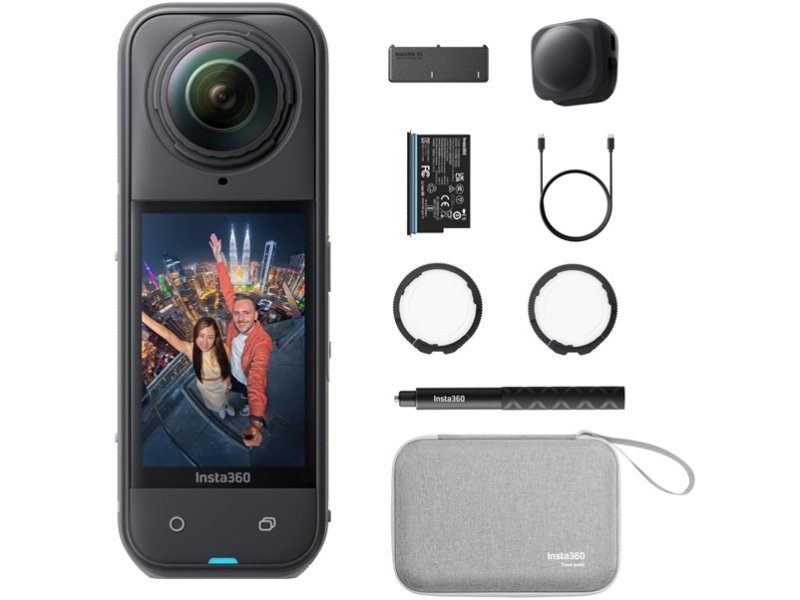Ostalo | Režimi snimanja: 360º video: Video (sa Active HDR), PureVideo, InstaFrame, Timelapse, TimeShift, Bullet Time, Loop snimanje, Road Mode Jedan objektiv: Video, FreeFrame Video, Me režim, Loop snimanje Režimi fotografisanja: Fotografija (opciono HDR), Interval, Starlapse, Burst (rafalno) Boje i zvuk Kolor profili: Vivid, Standard, Flat I-Log: Da Kodiranje videa: H.264, H.265 Maksimalni bitrate: 180 Mbps Audio režimi: Automatska redukcija šuma vetra (dva nivoa) Pojačanje glasa Stereo 360° zvuk Audio format: 48 kHz, 16-bit, AAC Ekspozicija i kontrola Vrednost ekspozicije (EV): ±4EV ISO opseg: 100–6400 Brzina zatvarača: Fotografije: 1/8000 – 120s Video: 1/8000 – u zavisnosti od frejm rejta Balans bele: 2000K – 10000K