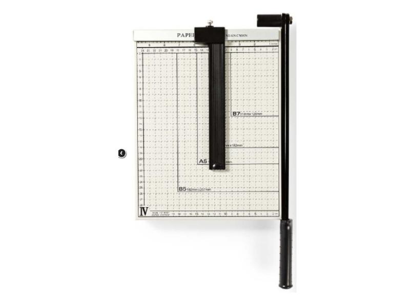| Specifikacija | Rezac papira i fotografija sa sigurnosnim uredajem za zakljucavanje. Velicina stola za secenje: 250x300 mm. Pogodno za listove velicine A4 i manje Sirina: 470 mm Visina: 270 mm Dubina: 58 mm Tezina: 2050 g Boja: crna / bela Materijal: Metal Format papira: A4 Vrsta noza: Metal Broj proizvoda u pakovanju: 1kom Max. velicina rezanja 210x297 mm |