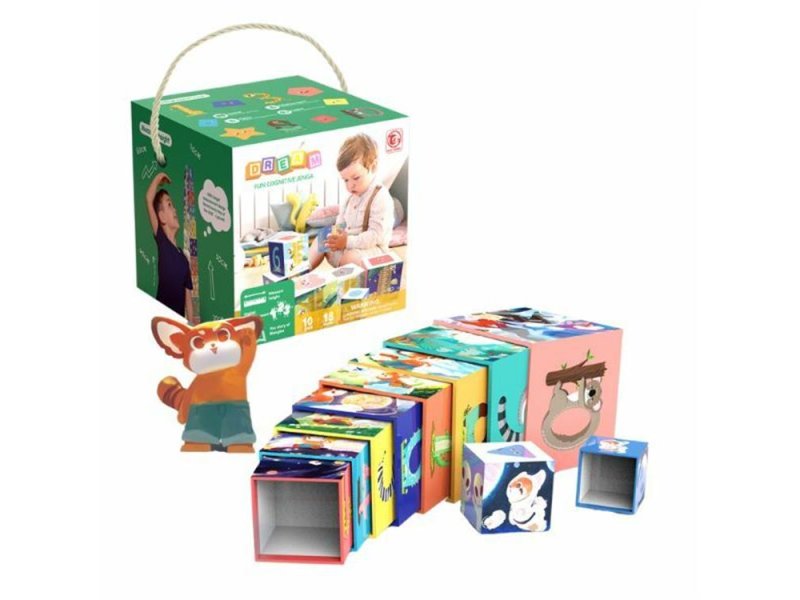 Dongo kocke  su pažljivo dizajnirane kako bi podstakle kognitivni razvoj kod dece. Ovaj set uključuje niz šarenih kocki različitih veličina, bogato ilustrovanih raznim životinjama i brojevima. Kroz igru sa ovim kockama, deca razvijaju logičke veštine, finu motoriku i sposobnost prepoznavanja oblika i boja.