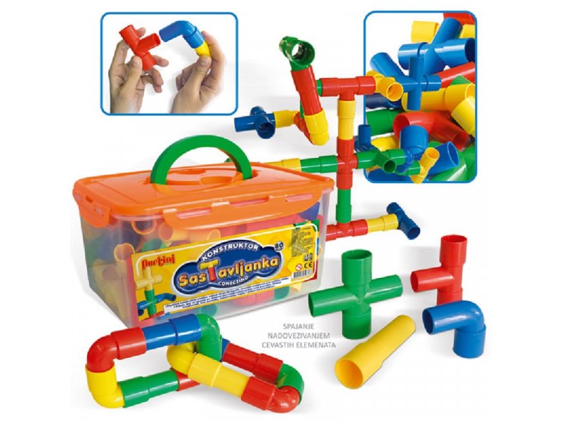 Plastična nizalica se sastoji od 80 šupljih, cevastih elemenata u 4 različita oblika koji se spajaju po sistemu cevi - nadovezivanjem. Dužina najvećeg elementa je 6,9 cm, a najmanjeg 4,4 cm. Razvija kreativnost, finu motoriku, koordinaciju, logiku i prostornu orijentaciju.