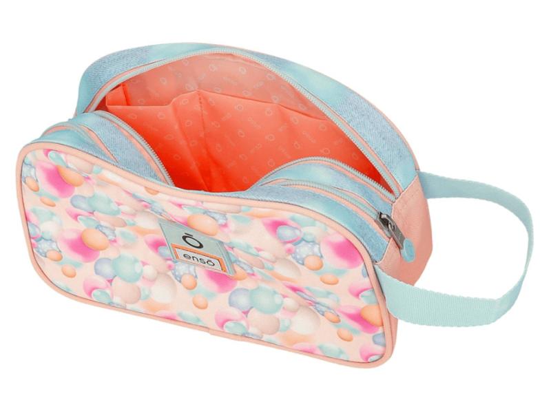 | Karakteristike | Enso BUBBLES dečiji neseser sa 2 pregrade – kompaktan, nežan i spreman za sve dečije avanture Enso BUBBLES dečiji neseser sa 2 pregrade je idealan dodatak za svaku devojčicu koja voli urednost, boje i praktična rešenja. Namenjen je za školu, putovanja, vannastavne aktivnosti i sve one male trenutke kada treba spakovati lične sitnice. Lagano pastelni dizajn, mehurići i cvetići čine ga nežnim, veselim i potpuno u Enso stilu. Izrađen je od kvalitetnog poliestera, koji je lagan, čvrst i jednostavan za održavanje, pa neseser može da izdrži svakodnevnu upotrebu bez brige. Prostran glavni odeljak Dimenzije 26 × 16 × 11 cm nude mnogo više prostora nego što se na prvi pogled čini. Glavni rajsferšlus odeljak je širok i pregledan, što omogućava lako pakovanje svih sitnica. U njega staju kozmetika za devojčice, gumice, šnalice, maramice, mini parfemi, pribor za ples ili trening, kao i osnovna higijena za putovanja. Sve je lepo organizovano i odmah dostupno. Kompaktan, ali iznenađujuće funkcionalan Iako je oblik kompaktan, volumen je maksimalno iskorišćen. Neseser lako staje u školski ranac, putnu torbu ili kofer. Ravna baza omogućava da stoji uspravno na stolu, a široko otvaranje čini ga idealnim za svakodnevnu upotrebu — i kod kuće i u pokretu. BUBBLES dizajn sa pastelno-plavim i roze nijansama daje mu poseban šarm, dok 3D mehurići i cvetići stvaraju efekat razigranosti koji deca obožavaju. |