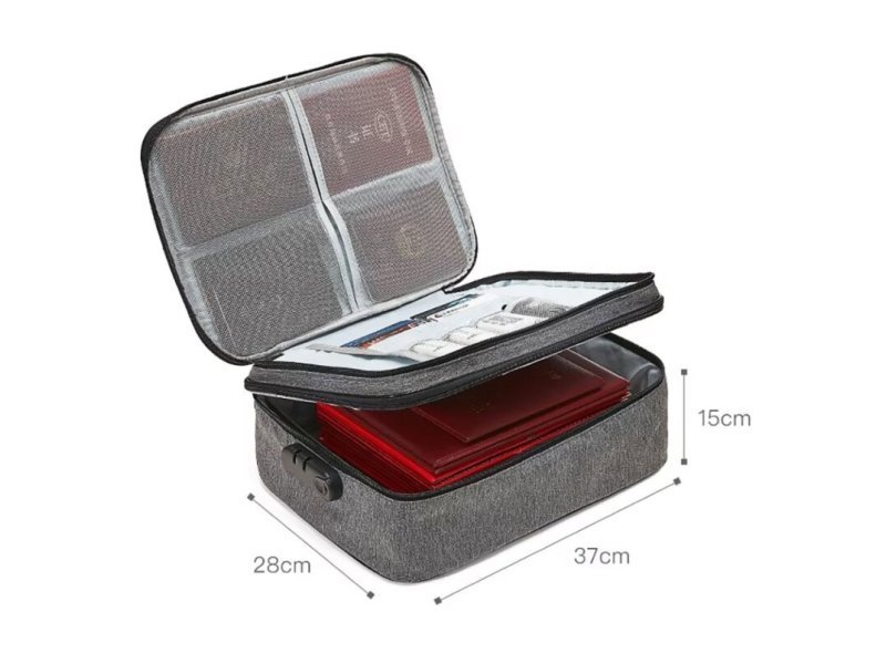| Karakteristike | Torba za skladištenje i organizaciju važnih dokumenata Torba ima ugrađenu sigurnosnu bravu Visokokvalitetan, izdržljiv i vodootporan materijal Idealna za kartice, pasoše, papire formata A4, fotografije, i drugo Višestruki, lako dostupni slojevi 4 odvojivih odeljaka |