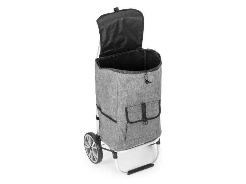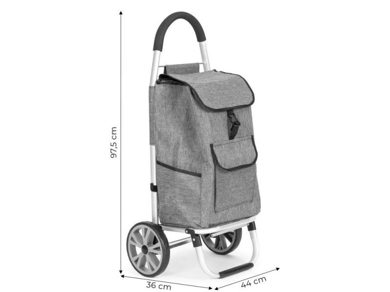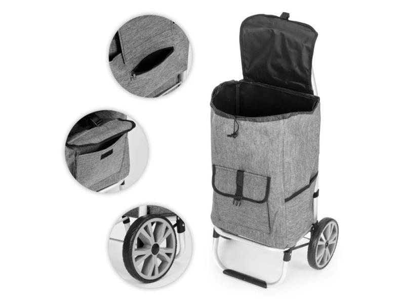 | Karakteristike | Kapacitet torbe: 33 litra Ručka: Ergonomska sa mekanom oblogom Džepovi: Prednji, zadnji (sa patentom) i bočni džepovi za sitnice Odvajanje torbe: Čičak sistem za lako pražnjenje i čišćenje Boja: Siva Pogodno za: Svakodnevnu kupovinu, tržnicu, šetnju i transport namirnica |