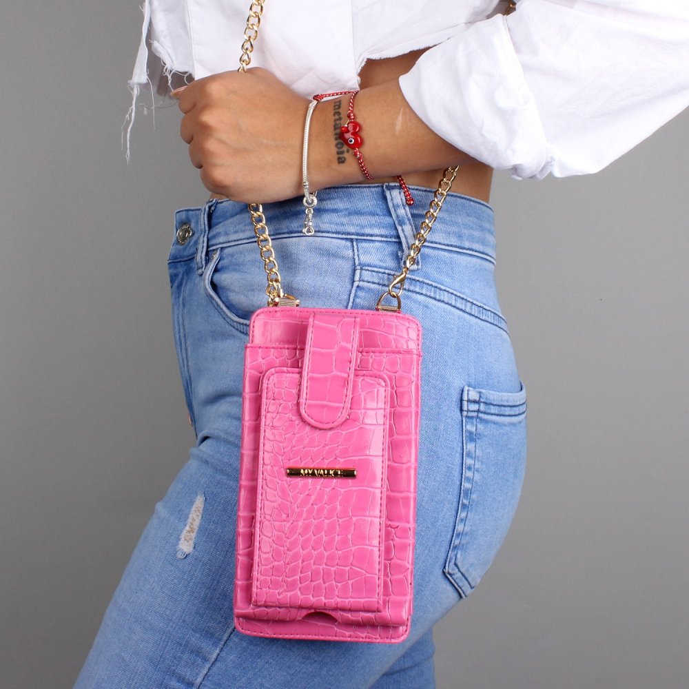 Materijal Kožna torba za telefon preko tela sa novčanikom i držačem za kartice.