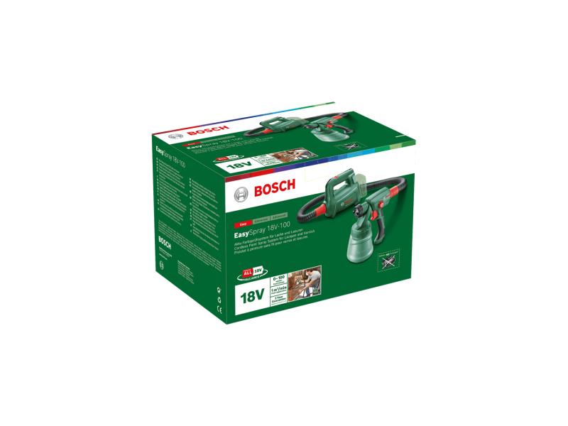 | Karakteristike | Napon akumulatora: 18 V Kompatibilnost akumulatora: 18V POWER FOR ALL ALLIANCE Preporuka za akumulator: ≥ 4.0 Ah Protok: 0 - 100 ml/min Nanošenje boje (površina): 1 m² Nanošenje boje (vreme): 1 min Nanošenje boje: 1 m² у 1 min Zapremina posude: 0.80 l Dužina creva: 1.3 m Tehnologija prskanja: HVLP Vreme rada sa 2,0 Ah: 8.5 Vreme rada sa 2,5 Ah: 11 Vreme rada sa 3,0 Ah: 13 Vreme rada sa 4,0 Ah (dvostruki sloj): 17 Vreme rada sa 4,0 Ah (PowerPlus): 17 Vreme rada sa 5,0 Ah: 22 Vreme rada sa 6,0 Ah: 26 Masa bez akumulatora: 1,8 kg Obim isporuke: Bosch EasySpray 18V-100 Naramenica Četka za čišćenje |