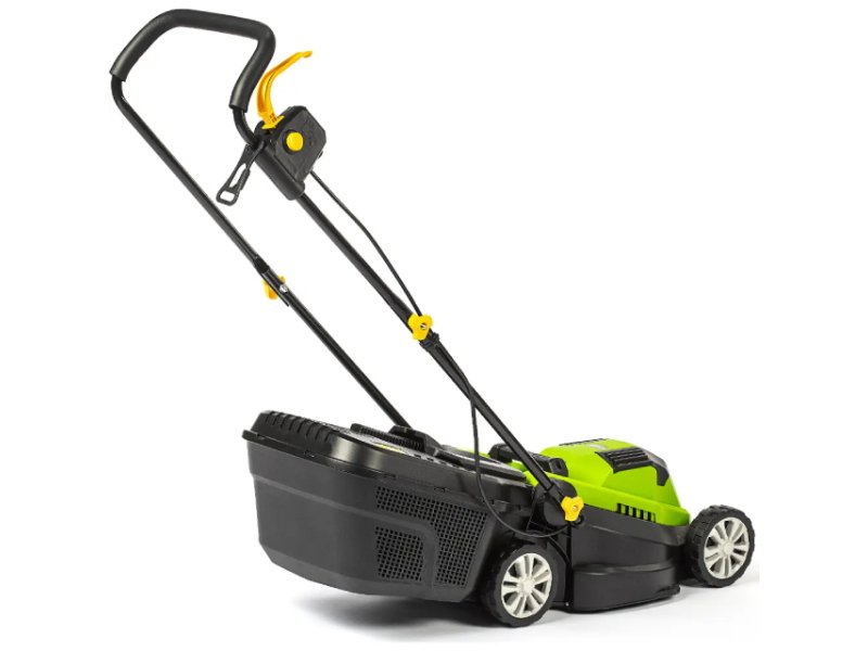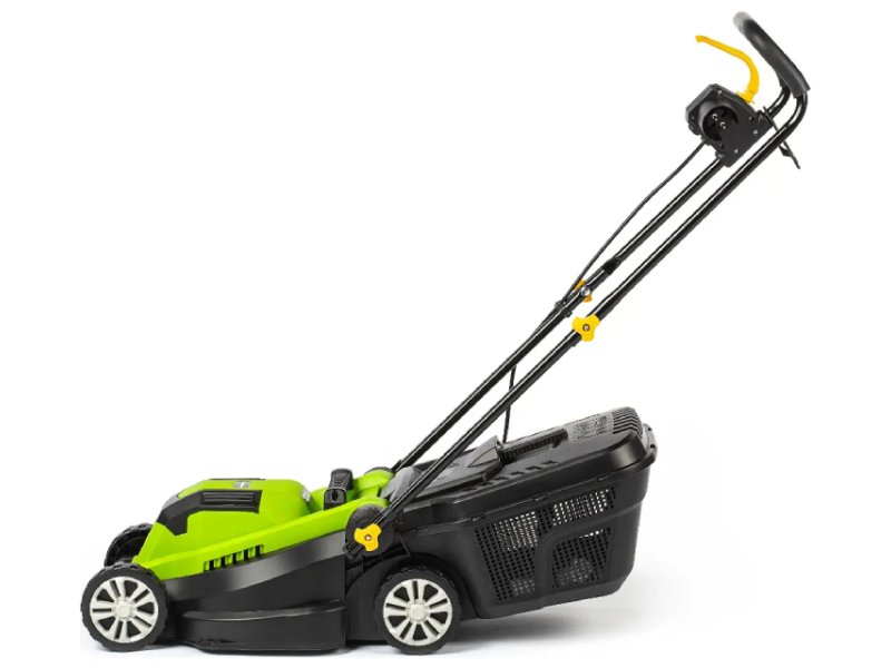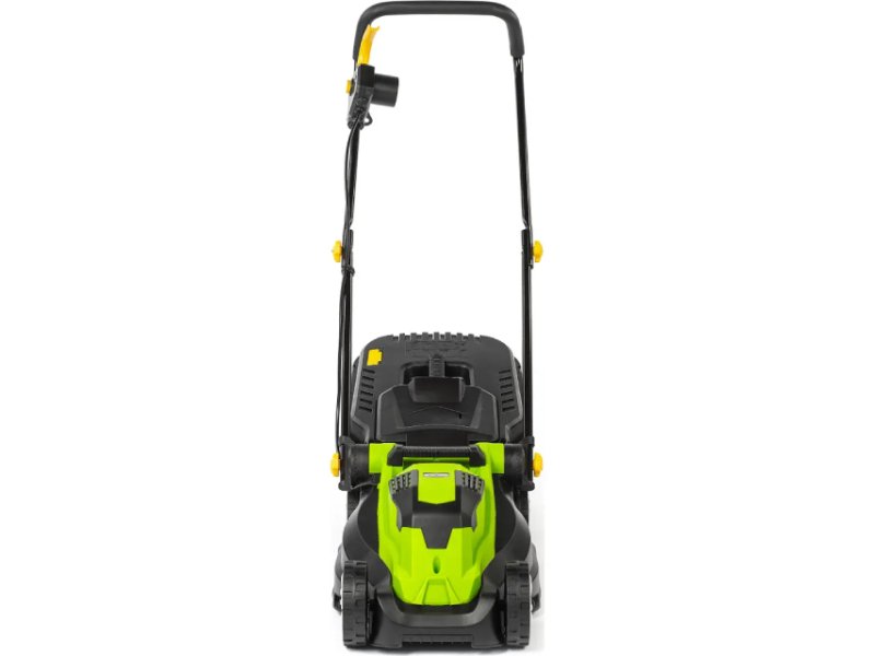 | Ostale karakteristike | Broj obrtaja: 3500/min Nivo buke: 96dB(A) Zapremina korpe za travu: 30l Boja: Crno-zelena Masa: 8.4kg Ostalo: Sklopiva drška, Podesiva visina ručke, Mekana ručka, Transportna ručka, indikator popunjenosti korpe, Sigurnosni prekidač, 3 pozicije visine košenja |