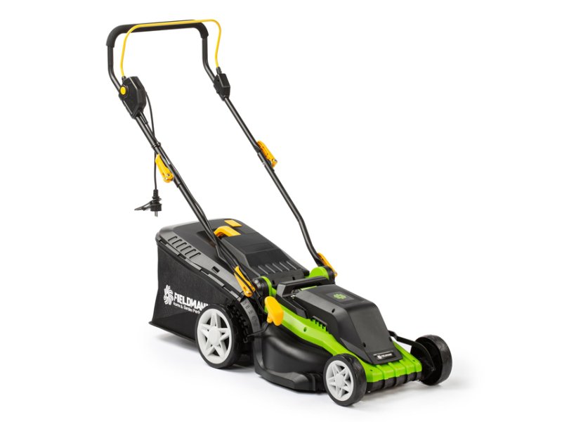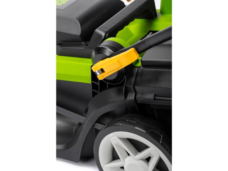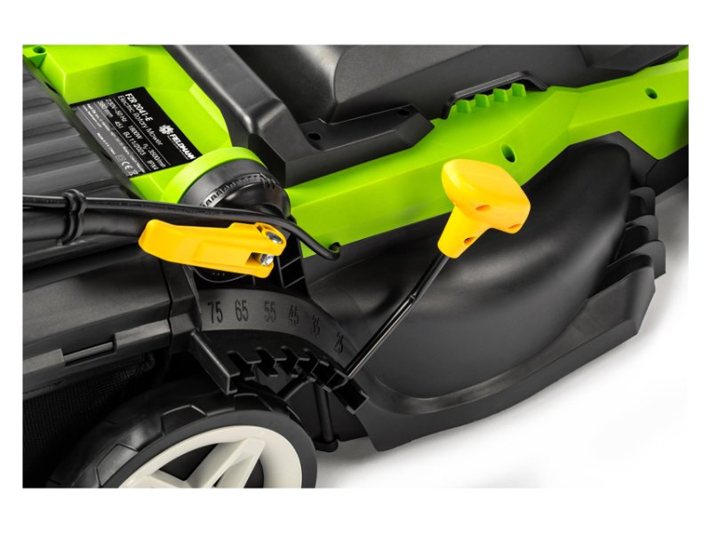| Ostale karakteristike | Broj obrtaja: 0-3500/min Nivo buke: 95dB(A) Zapremina korpe za travu: 45l Boja: Crno-zelena Masa: 10kg Ostalo: Podesiva visina ručke, 6 pozicija visine košenja, Mekana ručka, Transportna ručka |