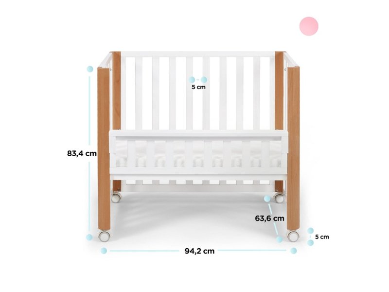| Opis | 4 različite funkcije u jednom proizvodu Mogućnost proširenja krevetca Dušek 90 × 60 cm uključen u set Drveni krevetac KOYA 4 u 1 dizajniran je za roditelje koji žele da provode što više vremena sa svojim detetom i da mu uvek budu blizu. Ima funkciju pomoćnog krevetca (uz roditeljski krevet), krevetca za bebu (90 × 60 cm), dečijeg krevetca (120 × 60 cm), kao i ogradice za igru. Krevetac ima točkiće na sve četiri nogice, koji su dizajnirani tako da ne grebu pod. Dečiji krevetac KOYA poseduje prečke sa svih strana, zahvaljujući kojima roditelj može uvek imati dete na oku. Ovaj krevetac je bezbedan – kako stranice, tako i prečke su zaobljene. KOYA je opremljen podesivim dnom: u funkciji pomoćnog krevetca na 3 visine, a u funkciji klasičnog krevetca na 4 visine. |
