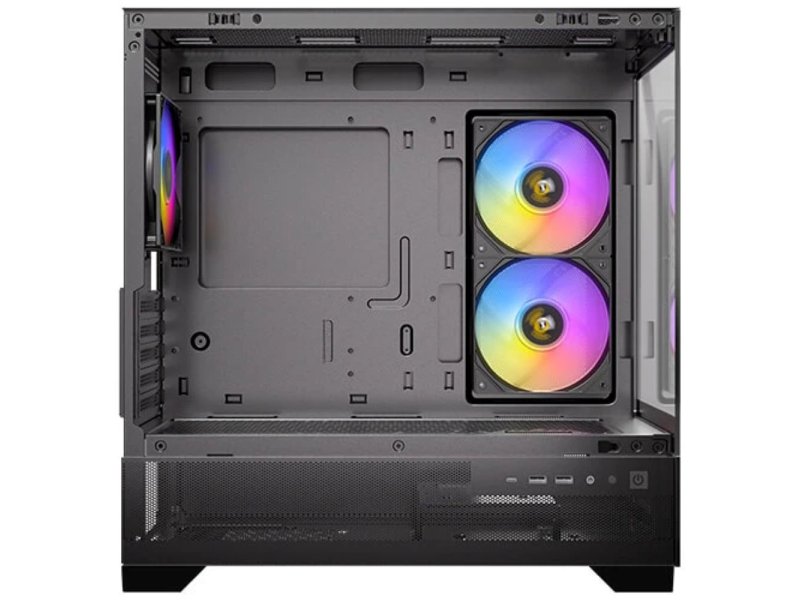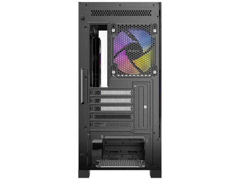 | Fizičke karakteristike | Prednji panel – priključci i kontrole: Power dugme, dugme za kontrolu LED-a,priključak za slušalice/mikrofon Bočna stranica: Kaljeno staklo 4 mm Ekspanzioni slotovi: 5 Ležišta za diskove: 3.5" / 2.5" 2 / 1 Ležišta za diskove: 2.5" 1 Gornji ventilatori: 3 × 120 mm / 2 × 140 mm Bočni ventilatori: 2 × 120 mm Poklopac napajanja (PSU shroud): 3 × 120 mm Zadnji ventilator: 120 mm Ugrađeni ventilatori 2 × 120 mm ARGB reverse ventilatora (desna strana) + 1 × 120 mm ARGB ventilator (pozadi) Podrška za radijatore: – gore 120 / 140 / 240 / 280 / 360 mm Maksimalna dužina grafičke kartice ≤ 415 mm Maksimalna visina CPU kulera ≤ 165 mm Maksimalna dužina napajanja (sa kablovima) ≤ 210 mm (sa HDD-om) Maksimalna dužina napajanja (bez kablova) ≤ 270 mm (bez HDD-a) Filteri za prašinu: Gornji / Donji Neto težina: 6.34 kg Bruto težina: 8.2 kg |