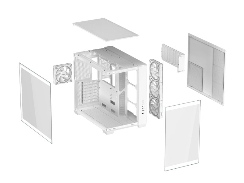 | Fizičke karakteristike | Dimenzije: 435 x 390 x 285 mm Boja: Bela Ostalo: Odvojivi filter za prašinu, ARGB, Bočno i prednje kaljeno staklo |