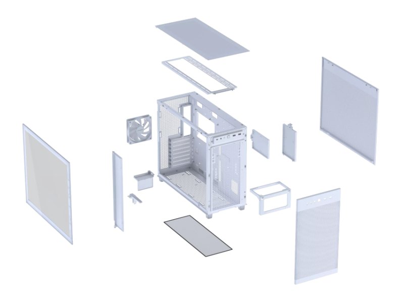 | Fizičke karakteristike | Materijal: Metal, Kaljeno staklo Dimenzije: 485 x 425 x 215 mm Masa: 7.8 kg Boja: Bela Ostalo: Bočno kaljeno staklo, Odvojivi filter za prašinu |