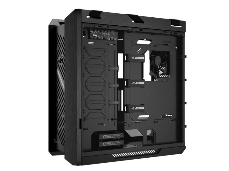 | Fizičke karakteristike | Dimenzije 250mm x 565mm x 591mm Materijal Kaljeno staklo, Aluminijum Masa 18kg Boja Crna Pakovanje GPU support bracket, 6x Extension Hub Support PWM Fan, 6x ARGB LED Strip Ostalo Filteri za prašinu, Bočno kaljeno staklo, Mogućnost vertikalne montaže GPU, AURA Sync |