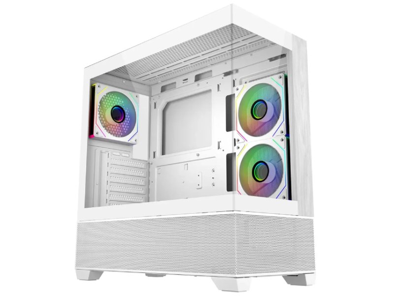 | Karakteristike | Osnovne karakteristike Format kućišta: Mid Tower Podržani formati matičnih ploča: ATX, microATX, ITX Snaga napajanja: Bez napajanja Unutrašnja ležišta Unutrašnja 3.5" ležišta: 1 (max 2) Unutrašnja 2.5" ležišta: 1 (max 2) Ležišta za ventilatore Poleđina: 1x 120mm Donja strana: 3x 120mm Gornja strana: 3x 120mm ili 2x 140mm Desna stranica: 2x 120mm Ugrađeni ventilatori Poleđina: 1x 120mm (ARGB) Desna stranica: 2x 120mm ARGB PWM reverse fan Ležišta za hladnjake Donja strana: 240mm, 360mm, 120mm Gornja strana: 120mm, 240mm, 360mm Desna stranica: 240mm, 120mm Kompatibilnost Maksimalni broj slotova: 7 Maksimalna visina procesorskog hladnjaka: 170mm Maksimalna dužina grafičke karte: 425mm |