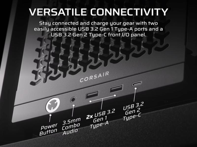 Priključci | Prednji panel: 2x USB 3.0 Type-A 1x USB 3.1 Type-C 1x kombinovani 3.5 mm audio priključak (slušalice/mikrofon) Power i Reset dugmad |