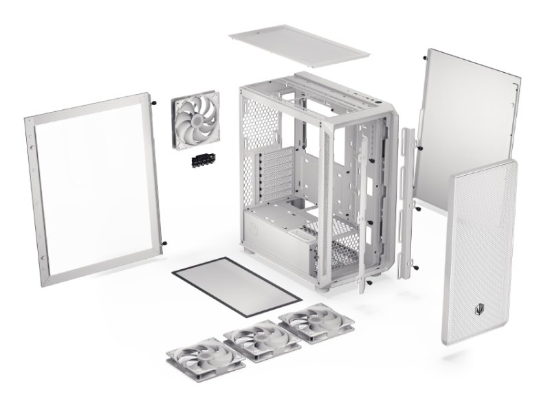 | Karakteristike | Format kućišta Mid Tower Podržani formati matičnih ploča ATX, microATX, Mini-ITX Napajanje Snaga napajanja Bez napajanja Unutrašnja ležišta Unutrašnja 3.5" ležišta 1 (pretvaranje 2.5 inča/3.5 inča Combo Bay) Unutrašnja 2.5" ležišta 6 (4+2) Ležišta za ventilatore Prednja strana 3x120mm ili 3x140mm Poleđina 1x120mm ili 1x140mm Donja strana 1x120mm Gornja strana 2x 120mm ili 2x 140mm Ostalo Filteri za prašinu na svim otvorima za ventilatore Ugrađeni ventilatori Prednja strana 3x140mm ARGB Poleđina 1x140mm ARGB Ležišta za hladnjake Prednja strana 120mm, 240mm, 280mm, 360mm Poleđina 120mm Gornja strana 120mm, 240mm, 280mm Kompatibilnost Maksimalni broj slotova 7 Maksimalna visina procesorskog hladnjaka 179mm Maksimalna dužina grafičke karte 350mm |