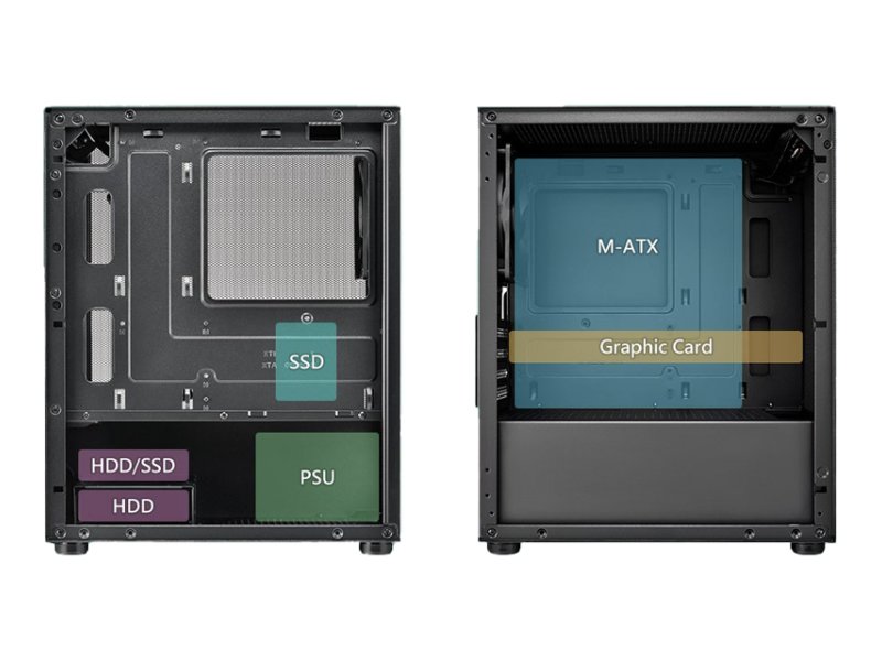 | Karakteristike | Format kućišta Small Tower Podržani formati matičnih ploča microATX, Mini-ITX Unutrašnja ležišta Unutrašnja 3.5" ležišta 2 Unutrašnja 2.5" ležišta 1 Maksimalni broj slotova 4 Ležišta za ventilatore Poleđina 1x 120mm Donja strana 2x120mm Gornja strana 2x120mm Ugrađeni ventilatori Poleđina 1x120mm Ležišta za hladnjake Poleđina 120mm Donja strana 120mm Gornja strana 120mm Kompatibilnost Maksimalna visina procesorskog hladnjaka 160mm Maksimalna dužina grafičke karte 285mm |