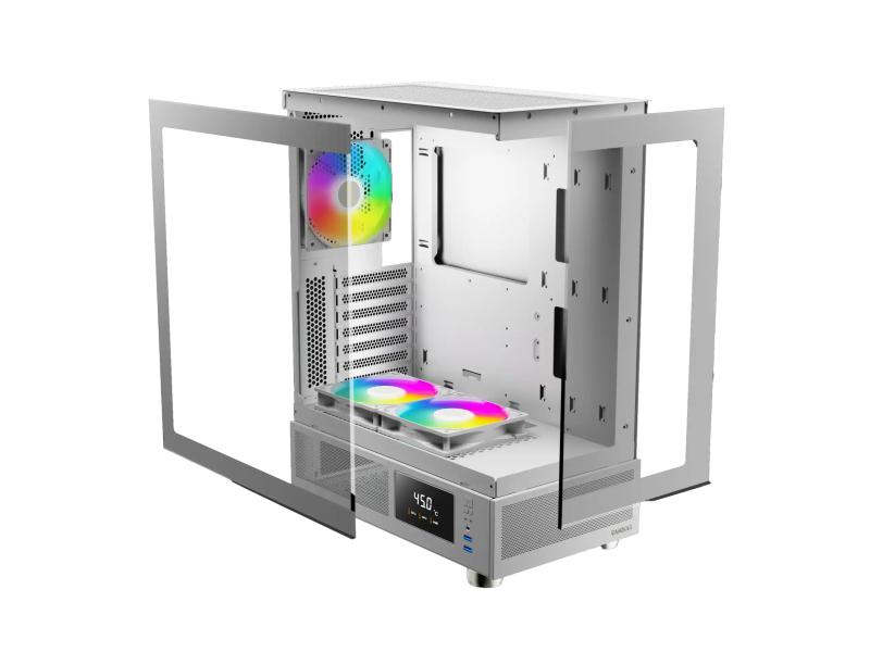 | Karakteristike | Tip kućišta Mid Tower Podržane matične ploče ATX Micro-ATX Mini-ITX Materijal SPCC čelik ABS plastika kaljeno staklo Podržane grafičke karte do 34 cm Podržani hladnjaci procesora do 16 cm Podržano napajanje do 16 cm Unapred instalirani ventilatori 3 × 12 cm ARGB (2 reverzna na dnu, 1 zadnji) Maksimalan broj ventilatora do 5 Podržano vodeno hlađenje gornje 24 cm, zadnje 12 cm |