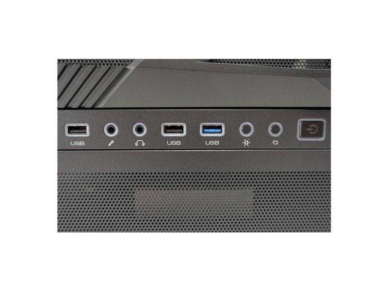 Integrisani I/O panel sa strane sadrži dugme za napajanje, resetovanje i izbor boje, kao i tri USB-A porta. Osim toga, tu se mogu pronaći HD audio ulaz i izlaz kako biste mogli vrlo povoljno koristiti