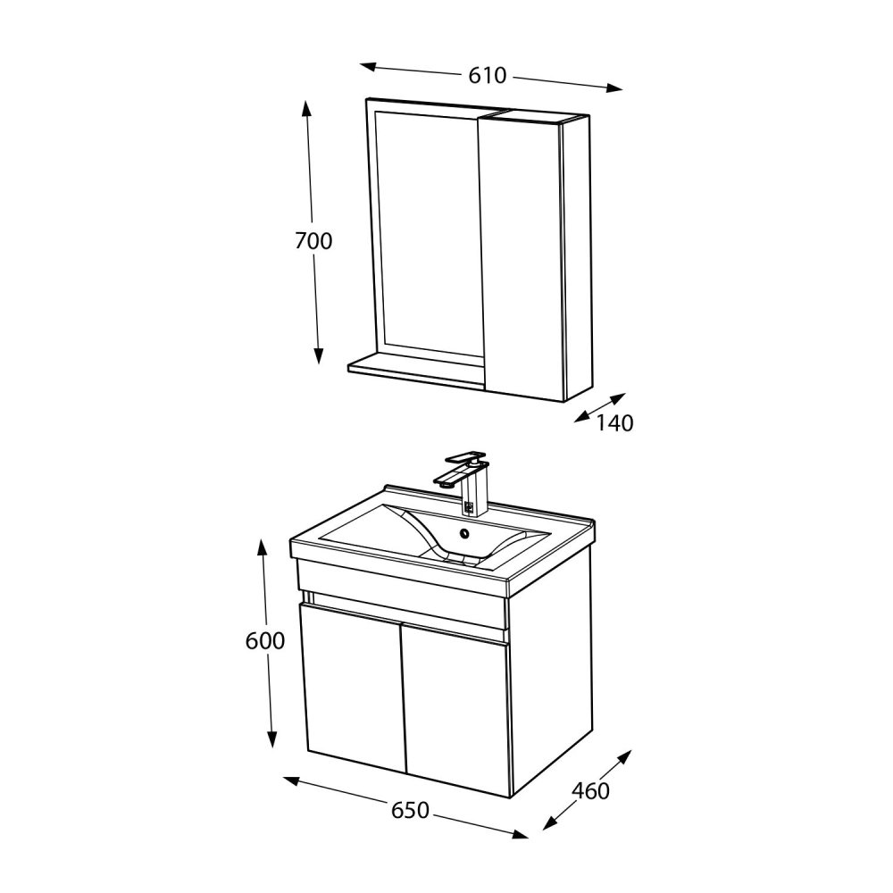 | Tip | Set kupatilskog nameštaja (2 komada) Amore 65 Matte Grey |