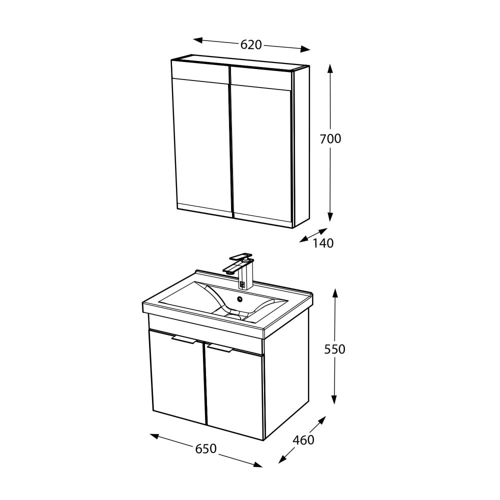 | Tip | Set kupatilskog nameštaja (2 komada) Carıno 65 Pine Matte Grey |